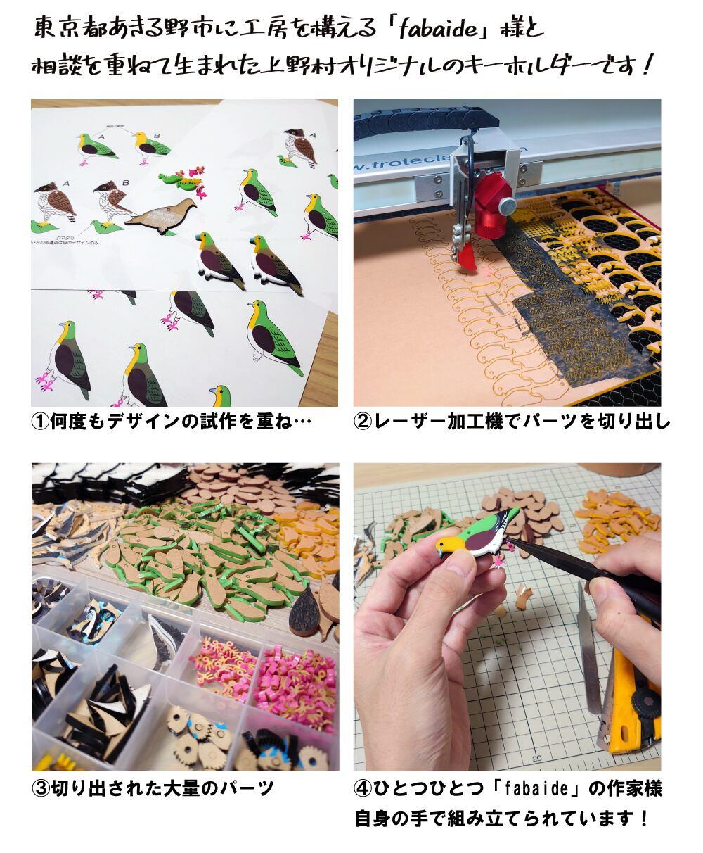 上野村に飛来する「アオバト」を模した上野村オリジナルのキーホルダーです。